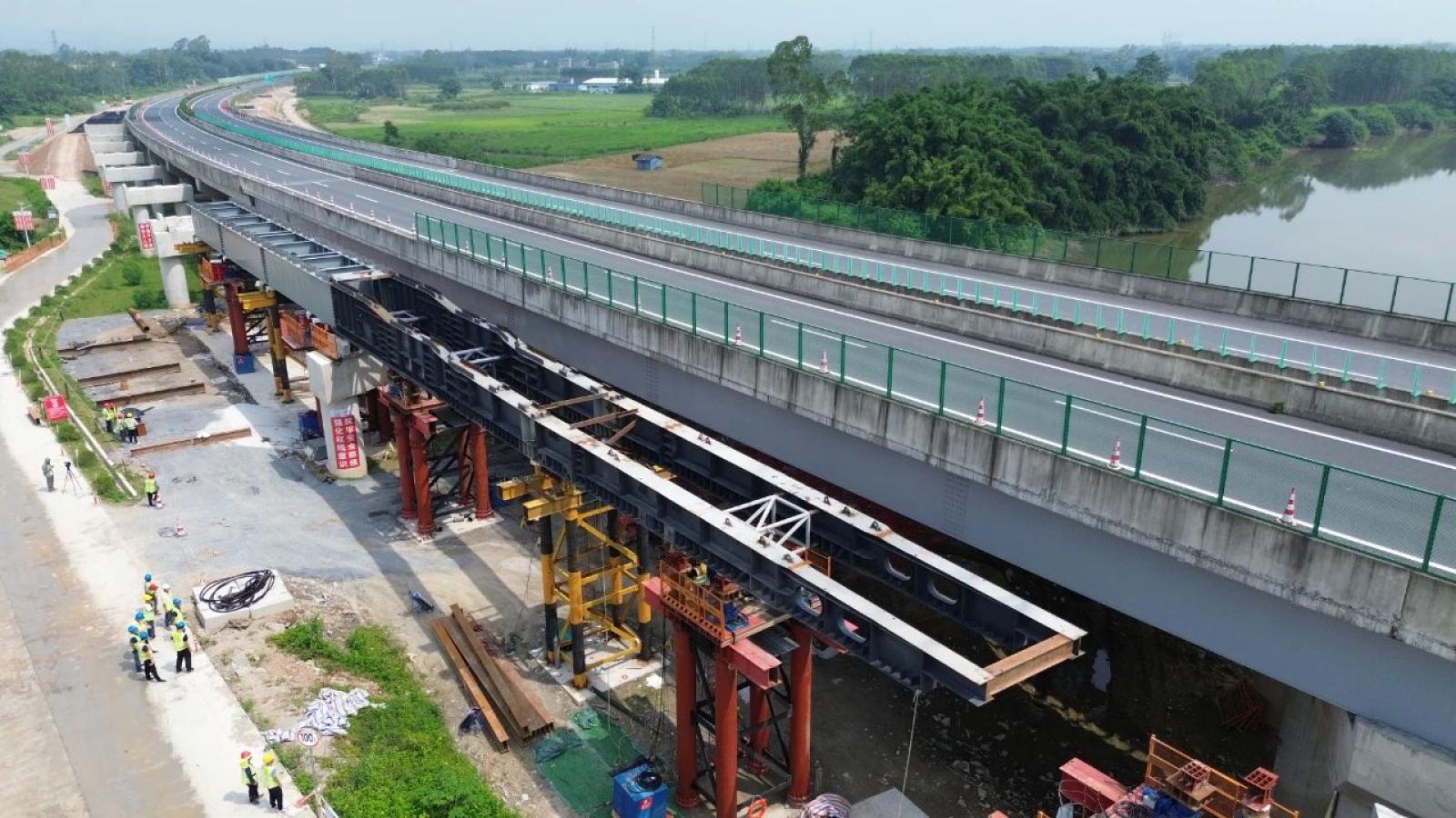 “毫米級”精度就位!荔玉路共線段擴(kuò)容工程完成首次鋼箱梁頂推作業(yè)